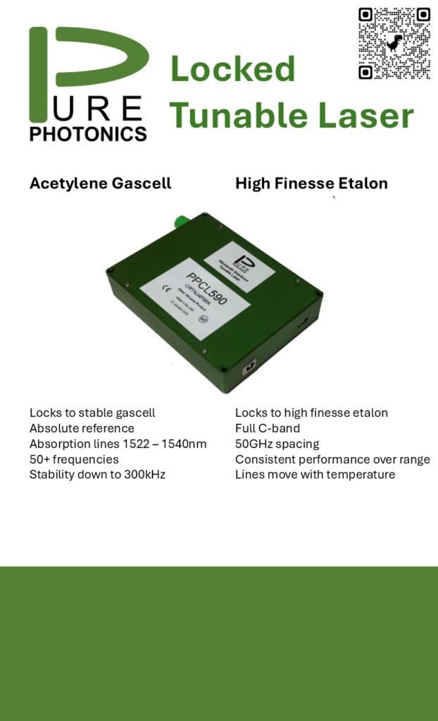 The PPCL590 can be configured with an Acetylene gascell or a 50 GHz spaced high-finesse etalon.
